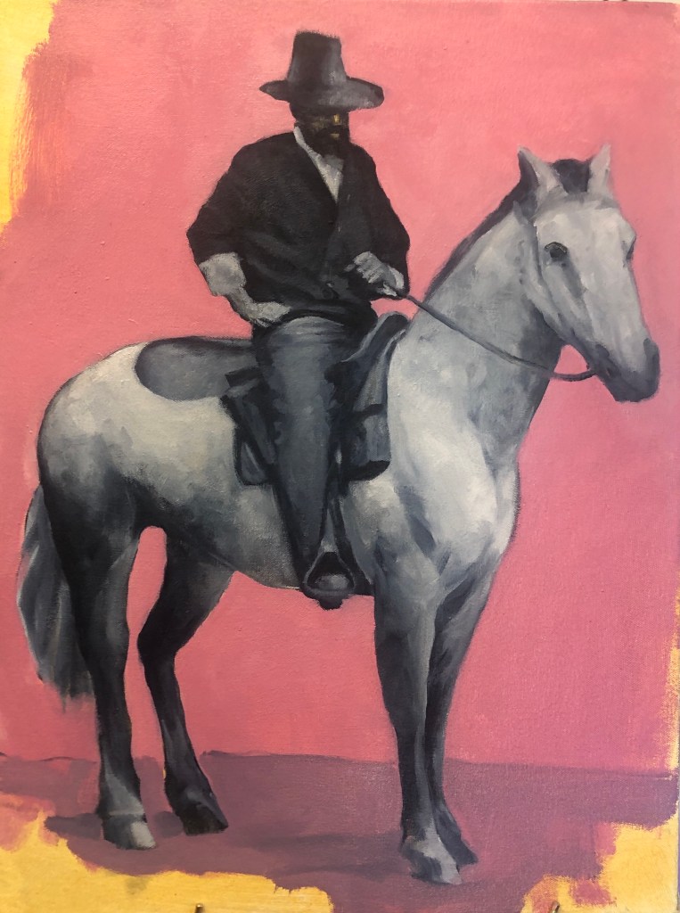 Much of realistic painting over the centuries has had the aim of capturing a moment in time, while most of what we see, and experience now seems to be the opposite. We’re constantly having our attention pulled one way then another, being interrupted by traffic, phones, people behaving unpredictably, Netflix, Amazon and constant advertising everywhere, all the time. And that’s just normal life.