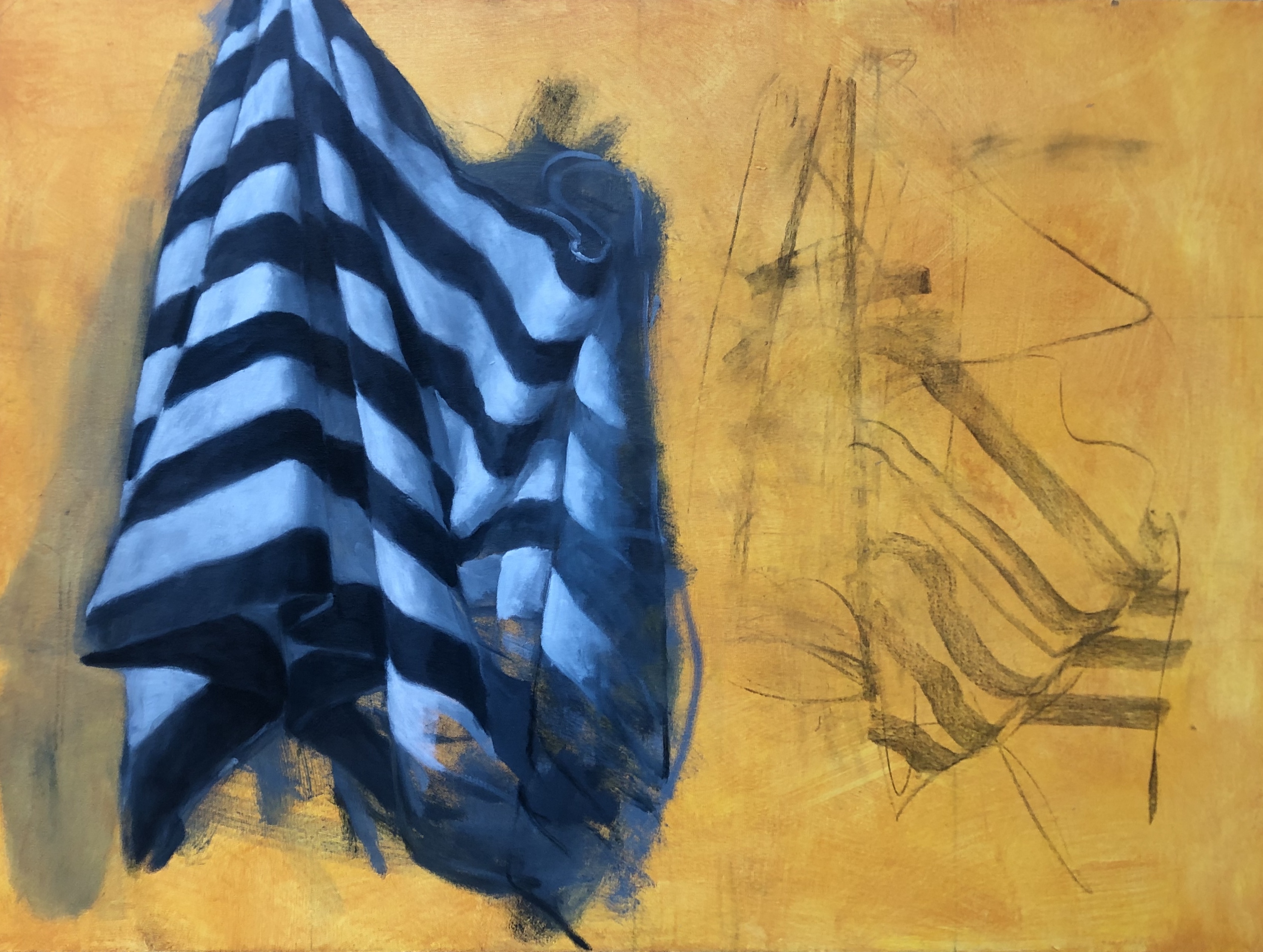 Once you’ve caught how it drapes, whether over a shoulder or over a chair, it’s a subject that allows the painter a lot of freedom because every piece of fabric is the same but different. Universal laws of gravity apply to all. If you express and control different ways that fabric drapes you can create a range of moods from gentle to dynamic.